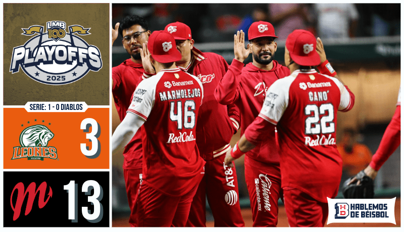 Ciudad de México – Con una ofensiva imparable y un rally de ocho carreras tras una suspensión por lluvia, los Diablos Rojos del México iniciaron la postemporada con un contundente triunfo 13-3 sobre los Leones de Yucatán en el Estadio Alfredo Harp Helú.