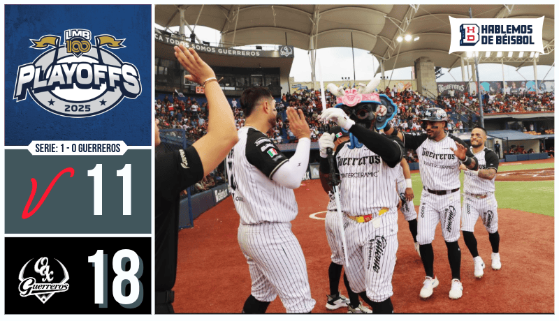 Oaxaca, Oax. – Con una ofensiva descomunal de 21 imparables y tres cuadrangulares, los Guerreros de Oaxaca vencieron 18-11 a El Águila de Veracruz en el primer juego de la serie de playoffs de la Zona Sur en el Estadio Eduardo Vasconcelos.
